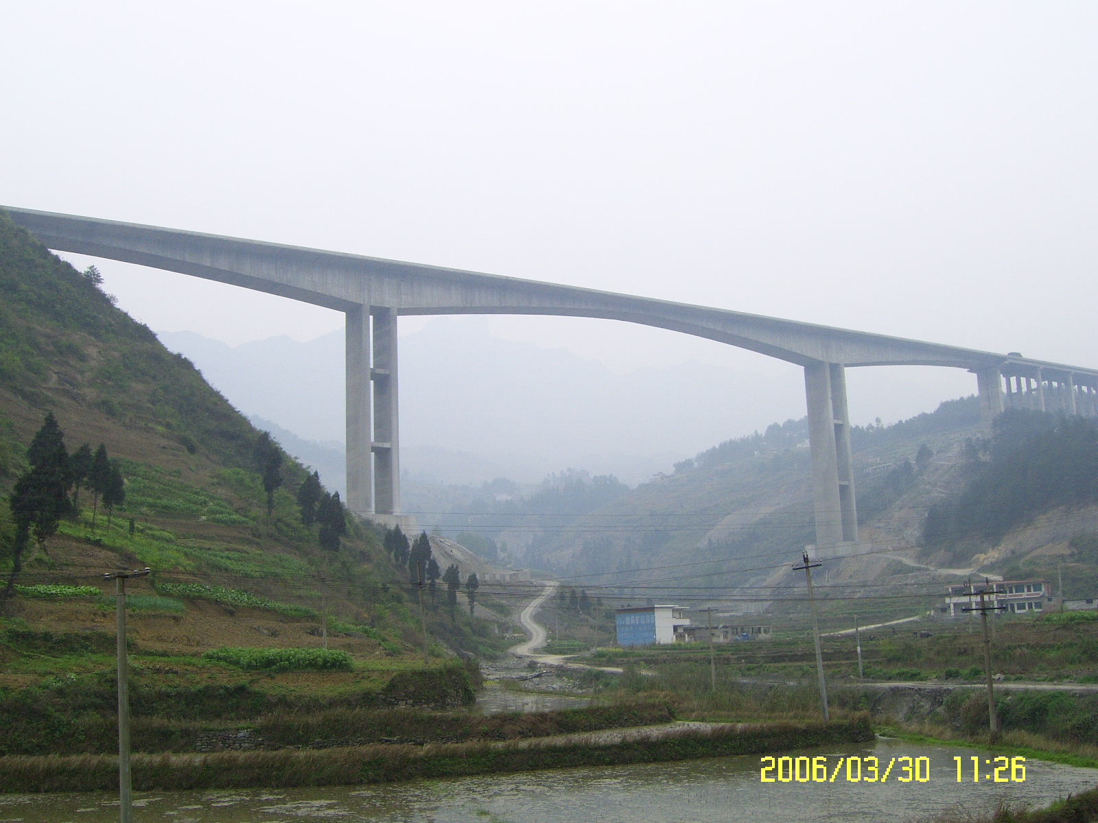 +整幅式連續(xù)剛構(gòu),其箱梁截面為單箱單室,頂板寬,底板寬,下部9#、10#兩個(gè)主墩為雙薄壁高墩,高度分別為、。該橋是國(guó)內(nèi)同類橋梁中罕見的集高、艱、難、險(xiǎn)于一體的工程,主跨跨度的整幅式單項(xiàng)單室堪稱全國(guó)之最。實(shí)踐證明,該橋的施工離不開科技創(chuàng)新,通過(guò)施工,總結(jié)出了一套省內(nèi)大跨度整幅式單箱單室三向預(yù)應(yīng)力連續(xù)剛構(gòu)高速、優(yōu)質(zhì)、安全施工的新技術(shù)、新經(jīng)驗(yàn)。通過(guò)驗(yàn)證,各項(xiàng)技術(shù)指標(biāo)均符合設(shè)計(jì)要求,全橋接縫平順,線型美觀。同時(shí),施工中,自行研制了自錨式三角形掛籃,其結(jié)構(gòu)簡(jiǎn)單,加工拼裝方便,采用液壓走行即快速又安全,剛度大,變形小,模板移動(dòng)靈活,內(nèi)模板脫模立模移動(dòng)快速方便,掛籃施工安全可靠。還總結(jié)了一套具有國(guó)內(nèi)先進(jìn)水平的大跨度連續(xù)剛構(gòu)施工線型控制技術(shù)和應(yīng)力監(jiān)測(cè)技術(shù),利用此套技術(shù),對(duì)大跨度連續(xù)剛構(gòu)橋進(jìn)行控制,保證了全橋高精度合攏,合攏誤差最大不超過(guò),梁部各截面應(yīng)力值與設(shè)計(jì)相符,全橋質(zhì)量?jī)?yōu)良,線型美觀。另,還對(duì)“機(jī)制砂高性能泵送混凝土的配制技術(shù)”進(jìn)行了研究并取得了成果,施工過(guò)程中混凝土的各項(xiàng)性能均符合設(shè)計(jì)和施工要求,該項(xiàng)技術(shù)在國(guó)內(nèi)建筑市場(chǎng)處于領(lǐng)先水平,也為國(guó)內(nèi)河砂缺乏省份澆筑高標(biāo)號(hào)高性能混凝土開創(chuàng)了先河,并獲得了2005年陜西省職工經(jīng)濟(jì)技術(shù)創(chuàng)新優(yōu)秀成果三等獎(jiǎng)。韓家店I號(hào)特大橋的施工受到了貴州省交通廳等各方的極大關(guān)注,通過(guò)科技攻關(guān)和全體員工的努力,強(qiáng)化施工現(xiàn)場(chǎng)管理,于2005年底順利完工,施工過(guò)程中積極采用新技術(shù)、新材料、新工藝,為連續(xù)剛構(gòu)施工探索出了一套先進(jìn)、科學(xué)的施工方法,加快了施工速度,保證了工程質(zhì)量和施工安全,填補(bǔ)了貴州省內(nèi)多項(xiàng)空白,整套技術(shù)——“崇遵高速公路大跨預(yù)應(yīng)力箱型連續(xù)剛構(gòu)橋施工技術(shù)”獲得了集團(tuán)公司2006年度科技進(jìn)步一等獎(jiǎng)。